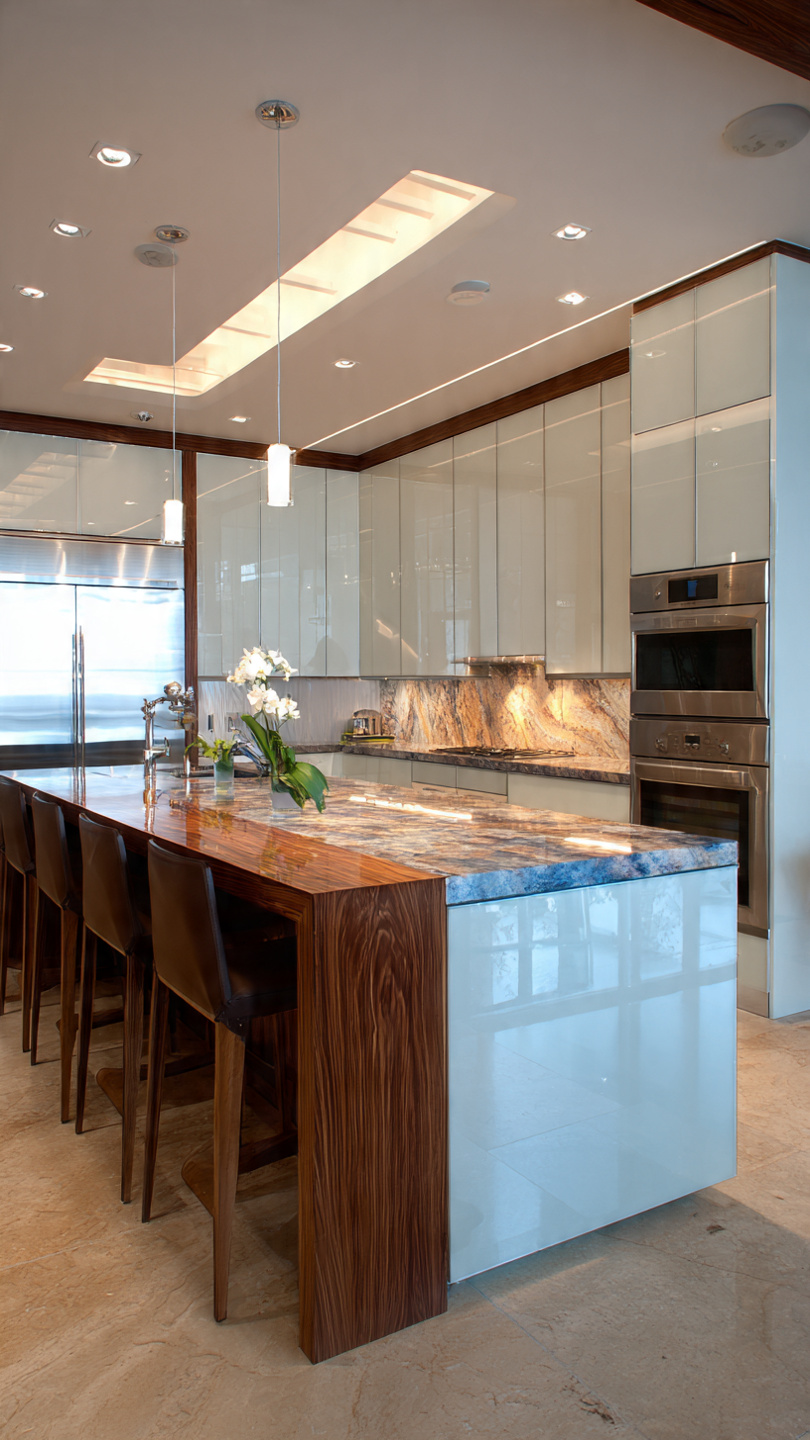 Hình 5: Tủ bếp nhựa Acrylic có đảo bếp hiện đại