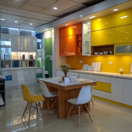 📷 Hình 1: Toàn cảnh showroom trưng bày tủ bếp nhựa của Nội Thất Nhựa Công Truyền tại Quận 12.