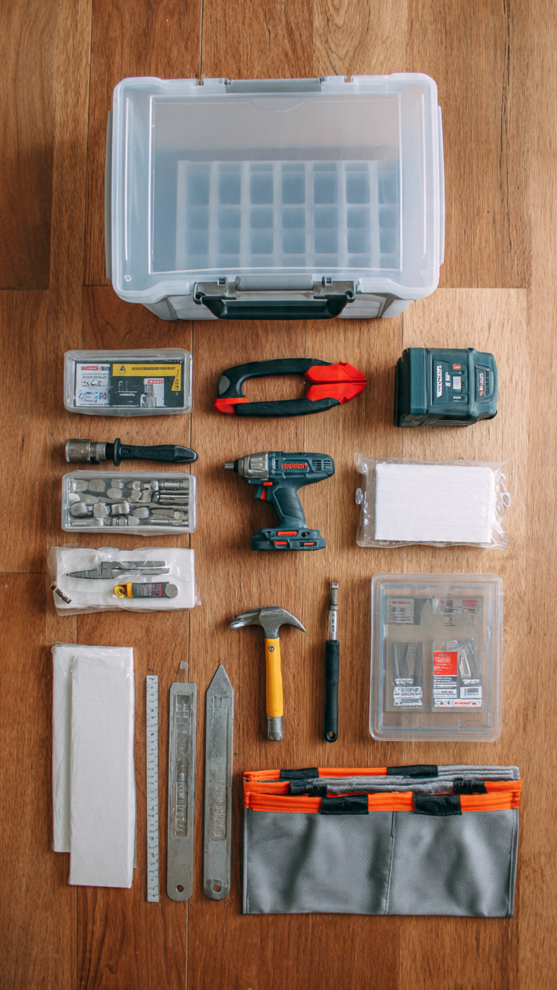 📸 Hình 2: Dụng cụ và vật liệu chuẩn bị cho lắp đặt