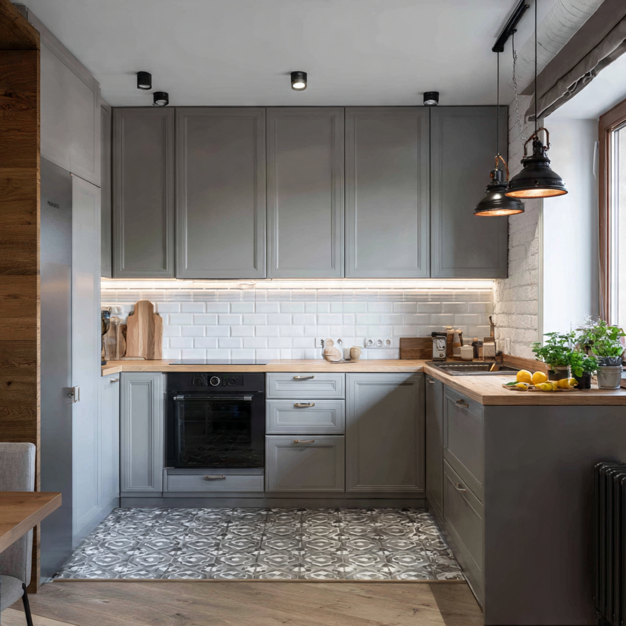 Hình 3: Tủ bếp nhựa chữ L gọn gàng – lựa chọn lý tưởng cho căn hộ 50m²
