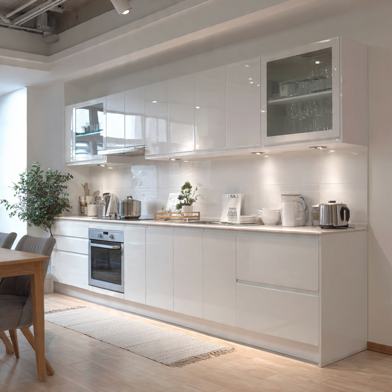 📸 Hình 1: Mẫu tủ bếp nhựa trắng tối giản phong cách Bắc Âu