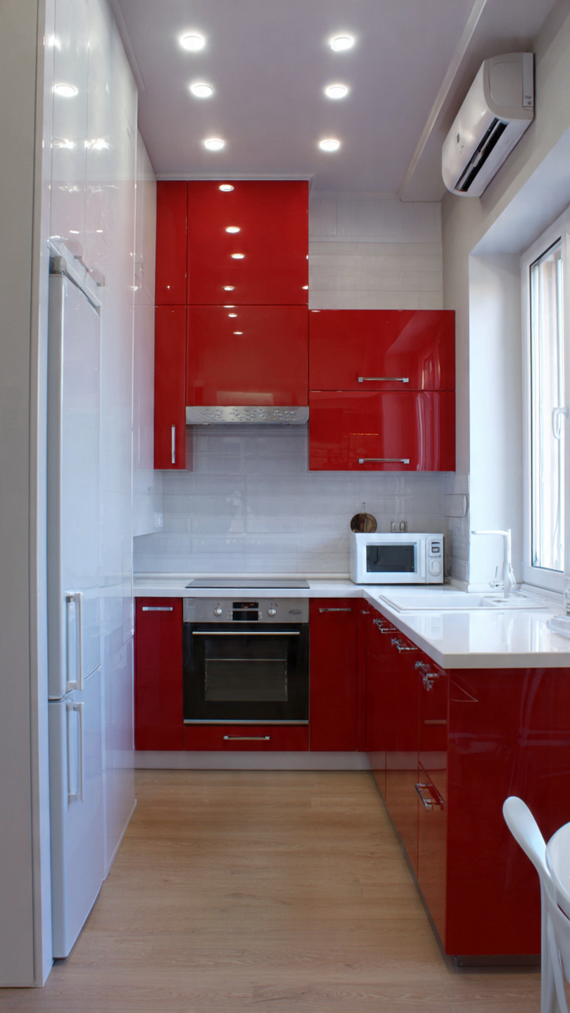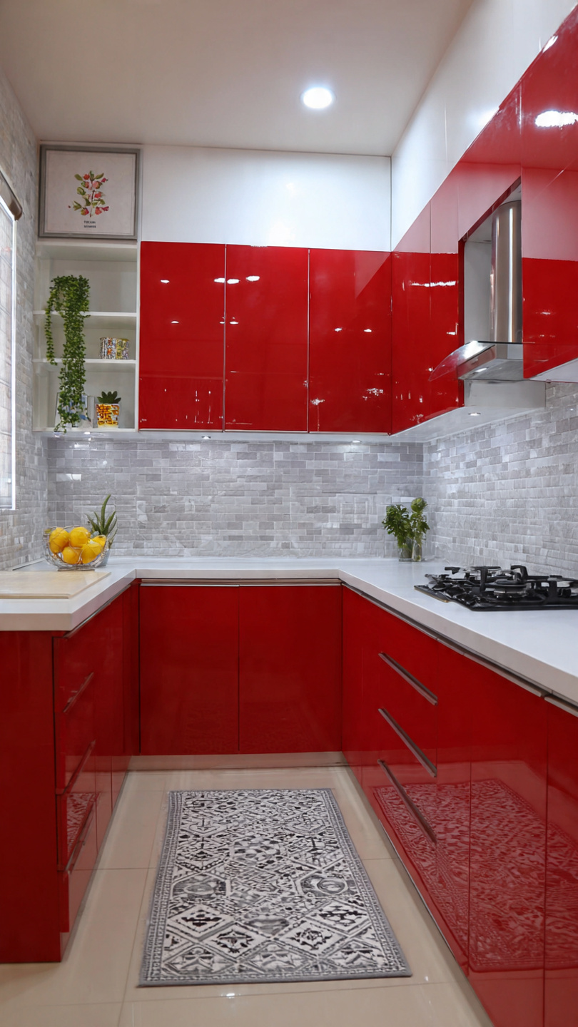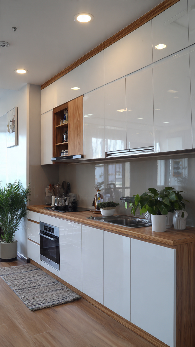 Hình 2: Mẫu tủ bếp nhựa Ecoplast chữ U phủ Acrylic bóng gương