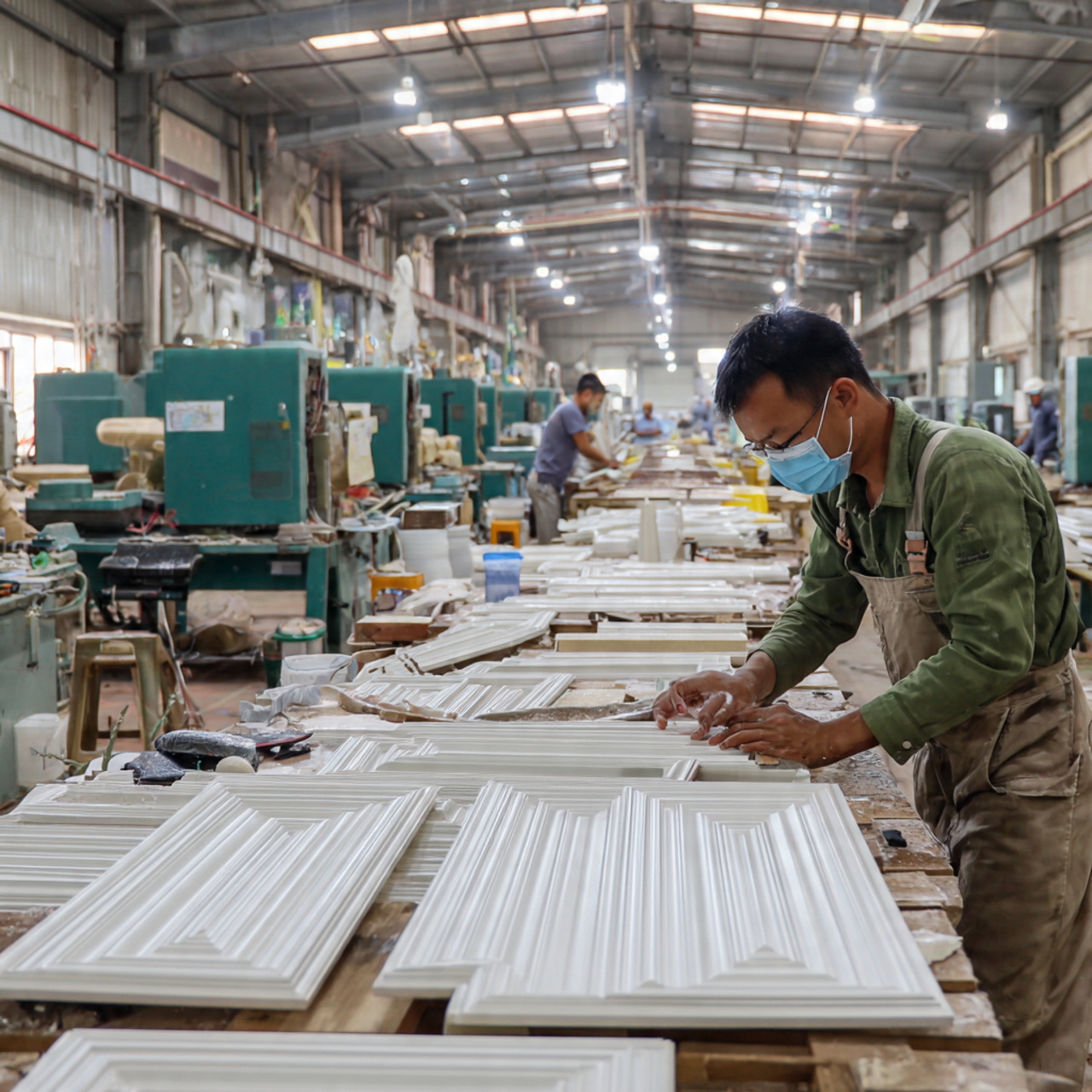 📸 Hình 3: Sản xuất tủ bếp nhựa tại xưởng Nội Thất Nhựa Công Truyền – kiểm soát chất lượng từng chi tiết.