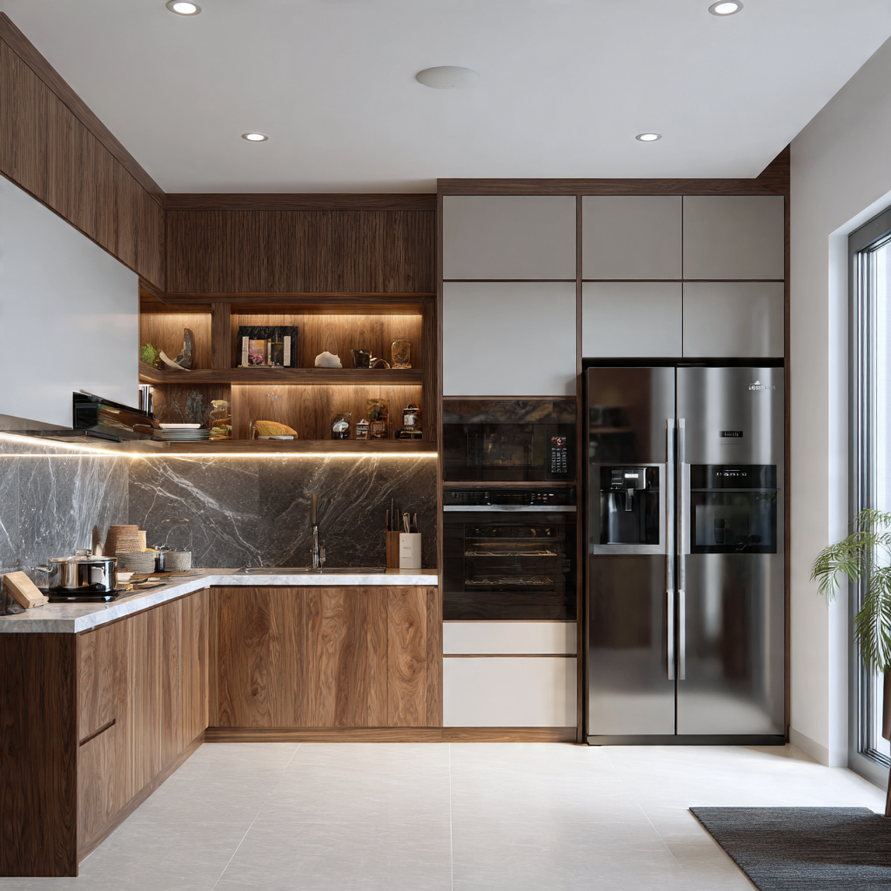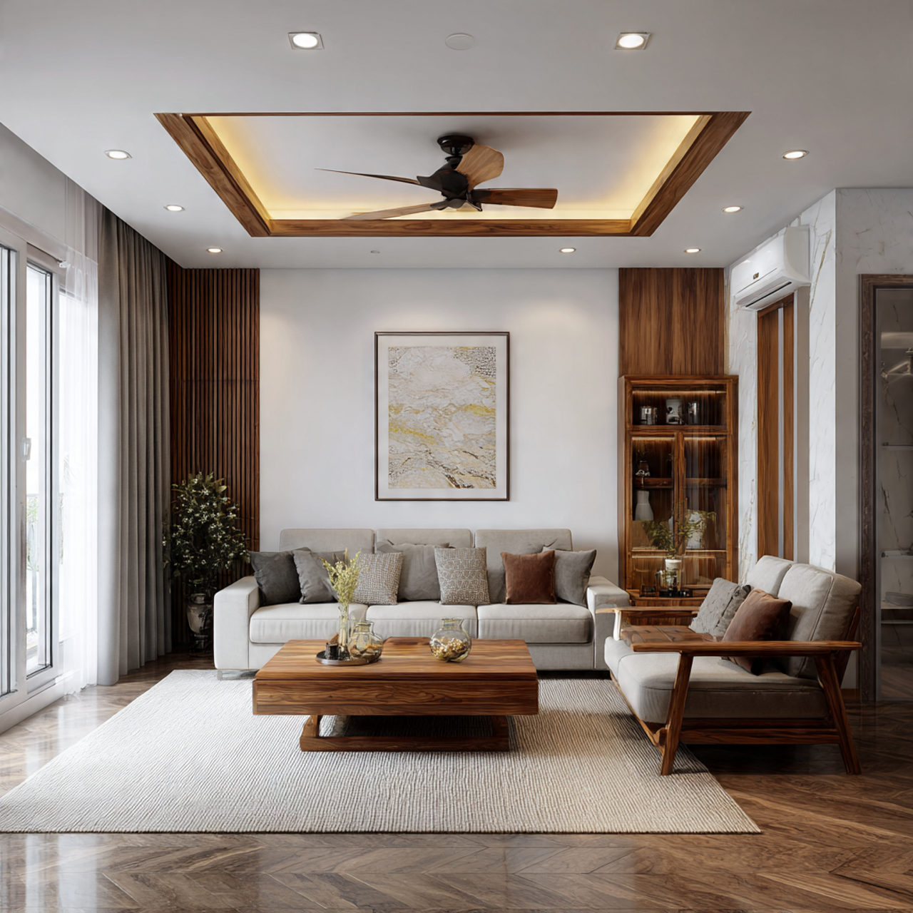 - Nhà phố: phối màu vân gỗ với tông trắng để tạo không gian sang trọng.