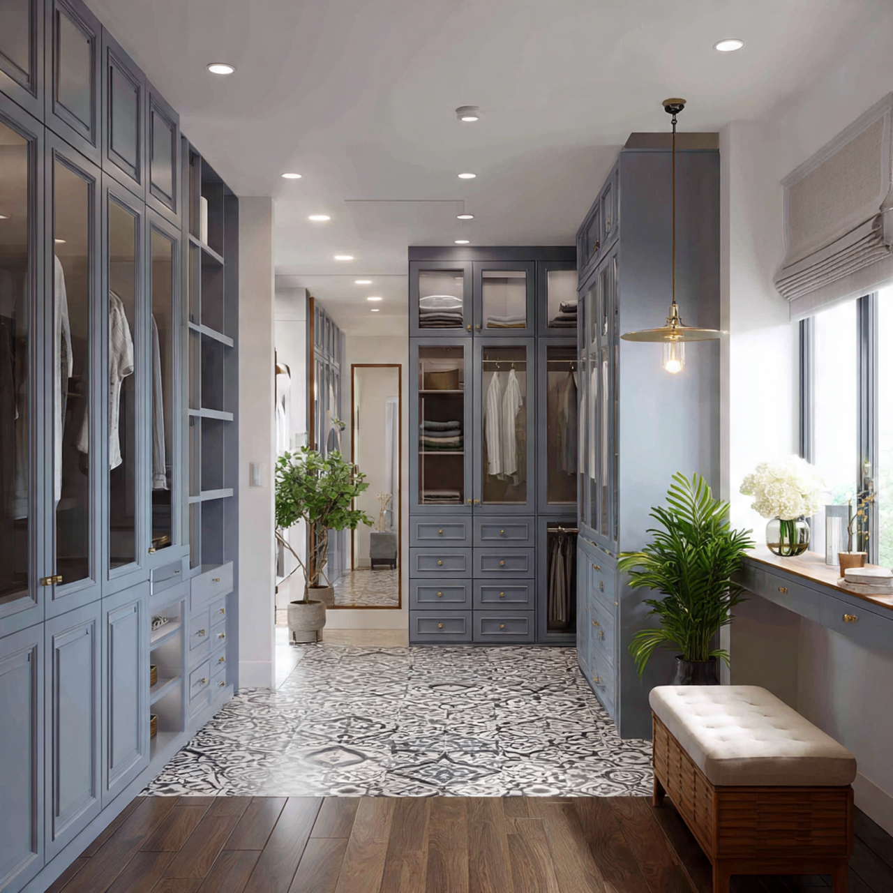 - Căn hộ nhỏ: chọn tông màu sáng, bố trí tủ âm tường để tiết kiệm diện tích.