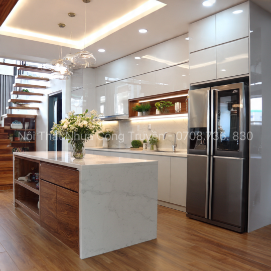 Thiết kế này đang rất thịnh hành tại các căn hộ cao cấp, giúp không gian bếp trở nên hiện đại và tiện nghi hơn bao giờ hết.