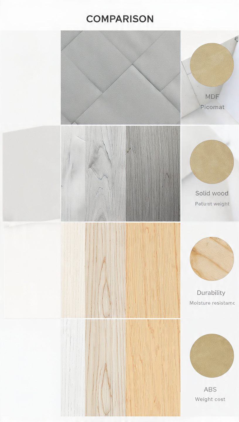 ⭐ HÌNH 2: So sánh độ bền giữa Picomat – MDF – Gỗ tự nhiên – ABS