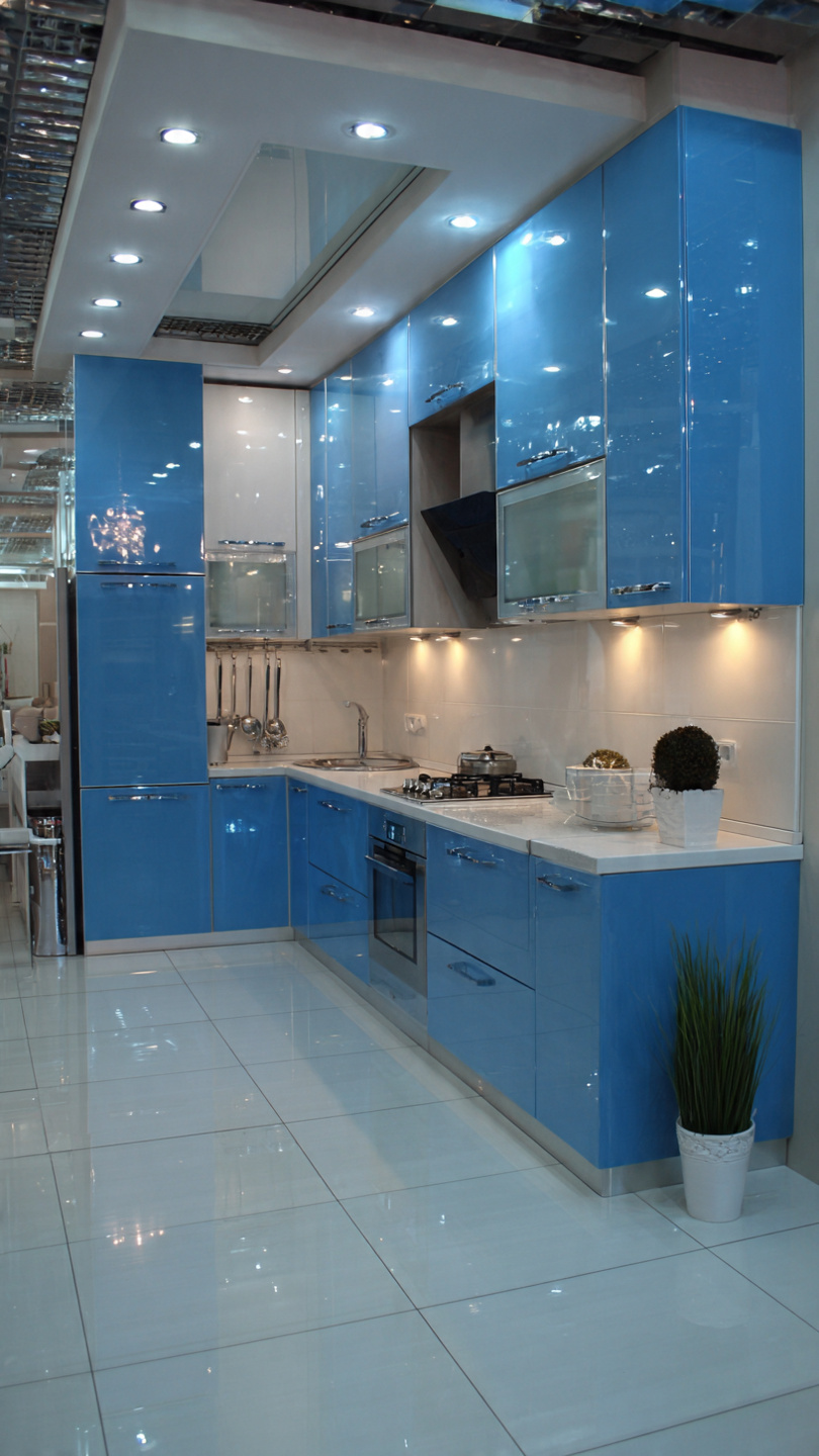 - Kính ốp bếp xanh dương