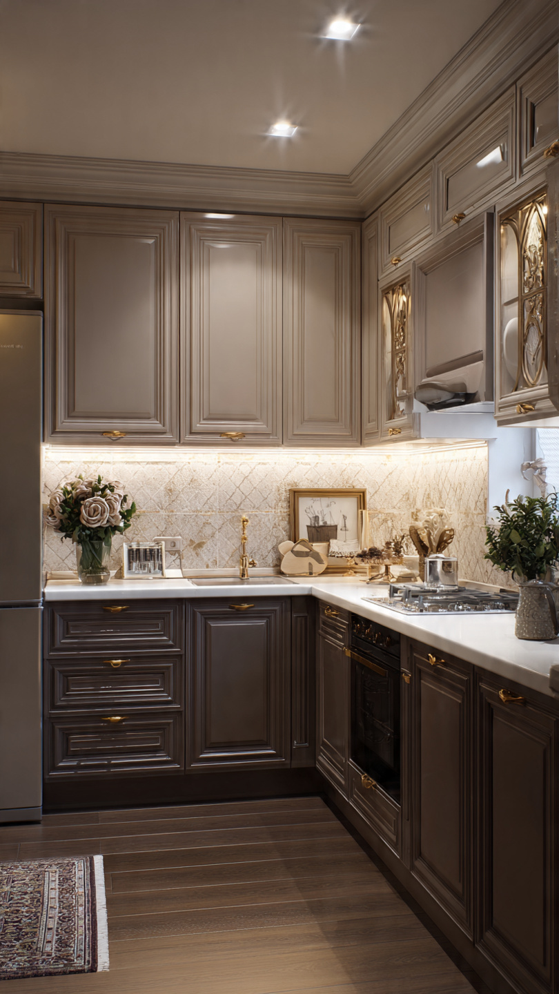 Hình 4: Tủ bếp PVC màu nâu – be cho người mệnh Thổ