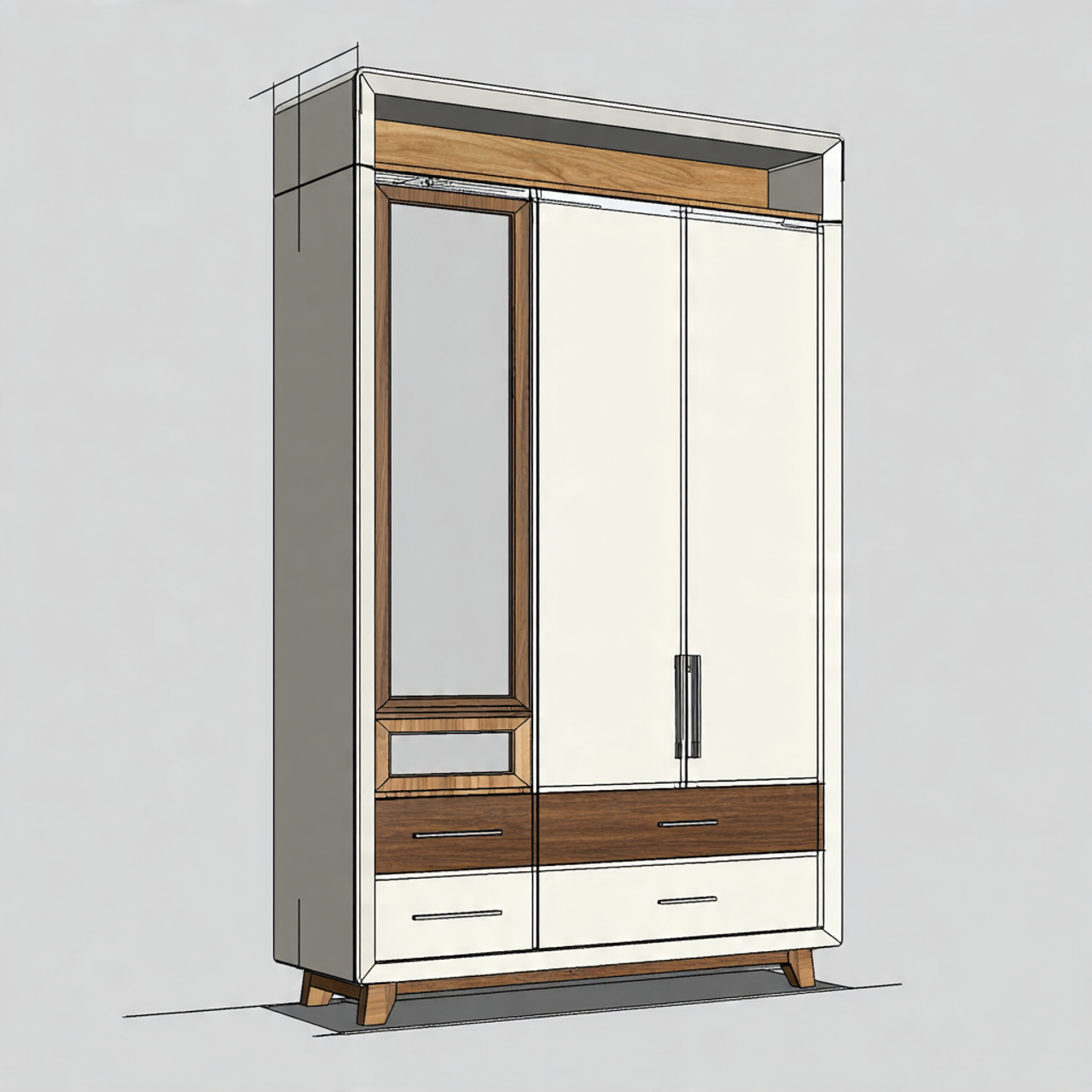 📷 Hình 1: Bản vẽ thiết kế tủ bếp nhựa Acrylic bóng gương phối màu trắng – nâu tinh tế tại xưởng Nội Thất Nhựa Công Truyền.
