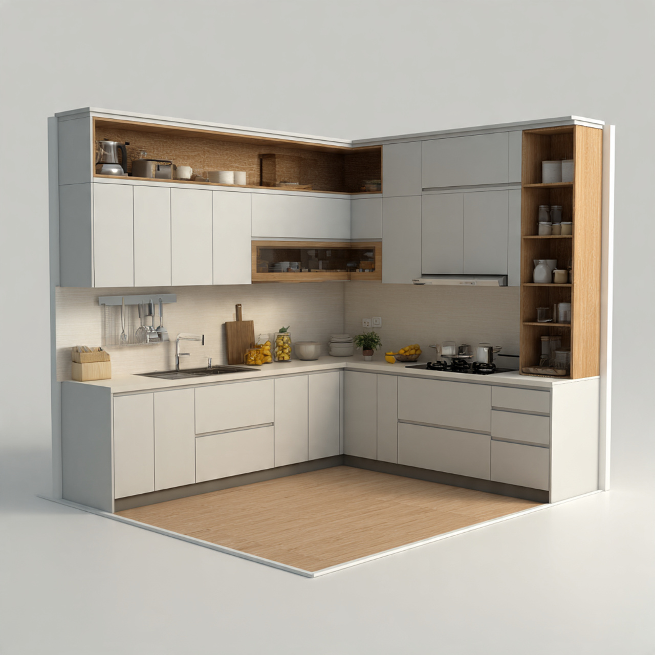2. Tủ bếp nhựa chữ L – Linh hoạt, tiện dụng