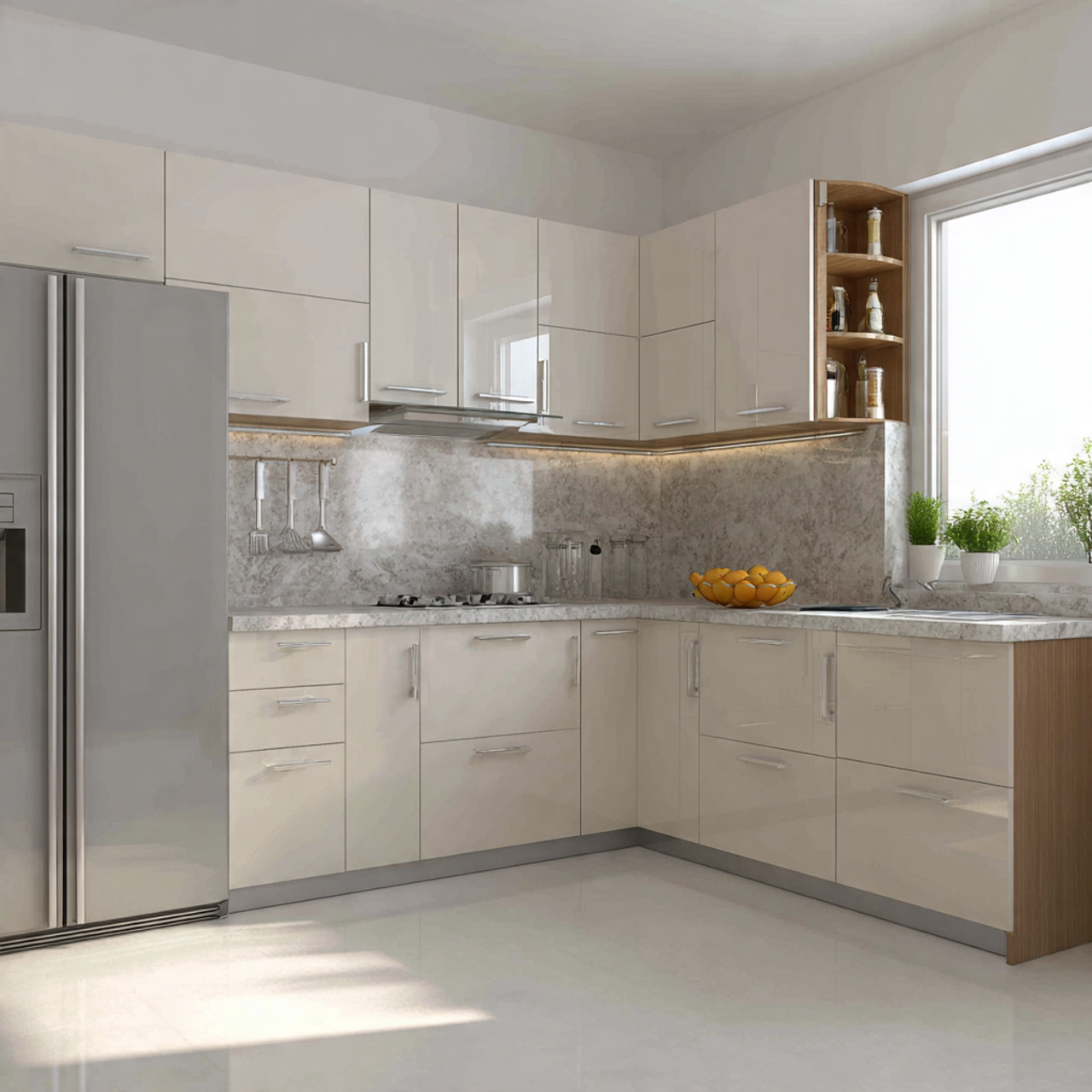 5.2. Tủ bếp nhựa chữ L – Linh hoạt, tối ưu diện tích góc