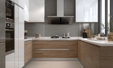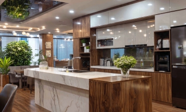 - Chung cư Vinhomes Grand Park (TP.HCM): tủ bếp nhựa vân gỗ tự nhiên.