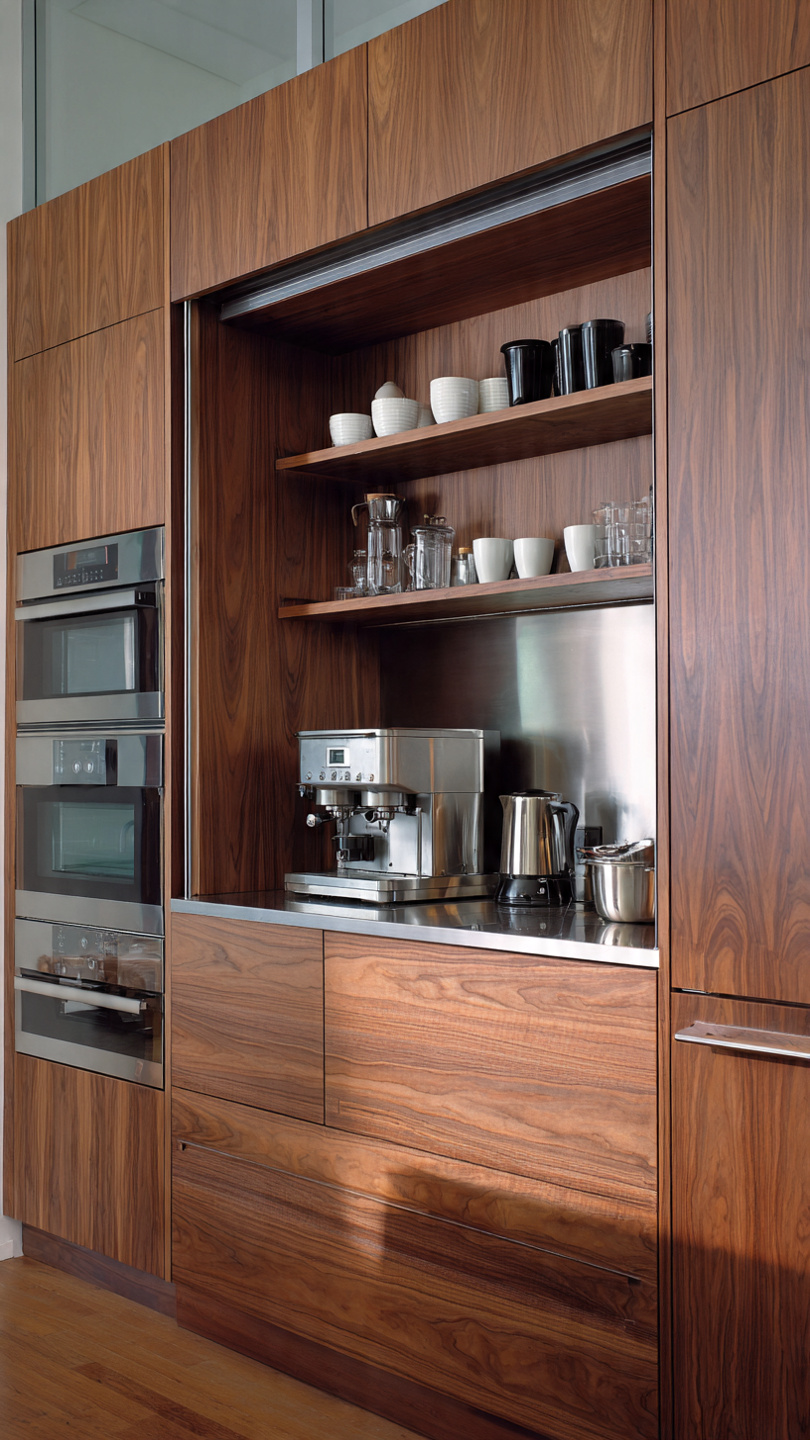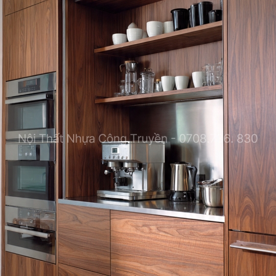 📸 Hình 5: Tủ bếp Picomat tông gỗ Walnut cao cấp – hiện đại