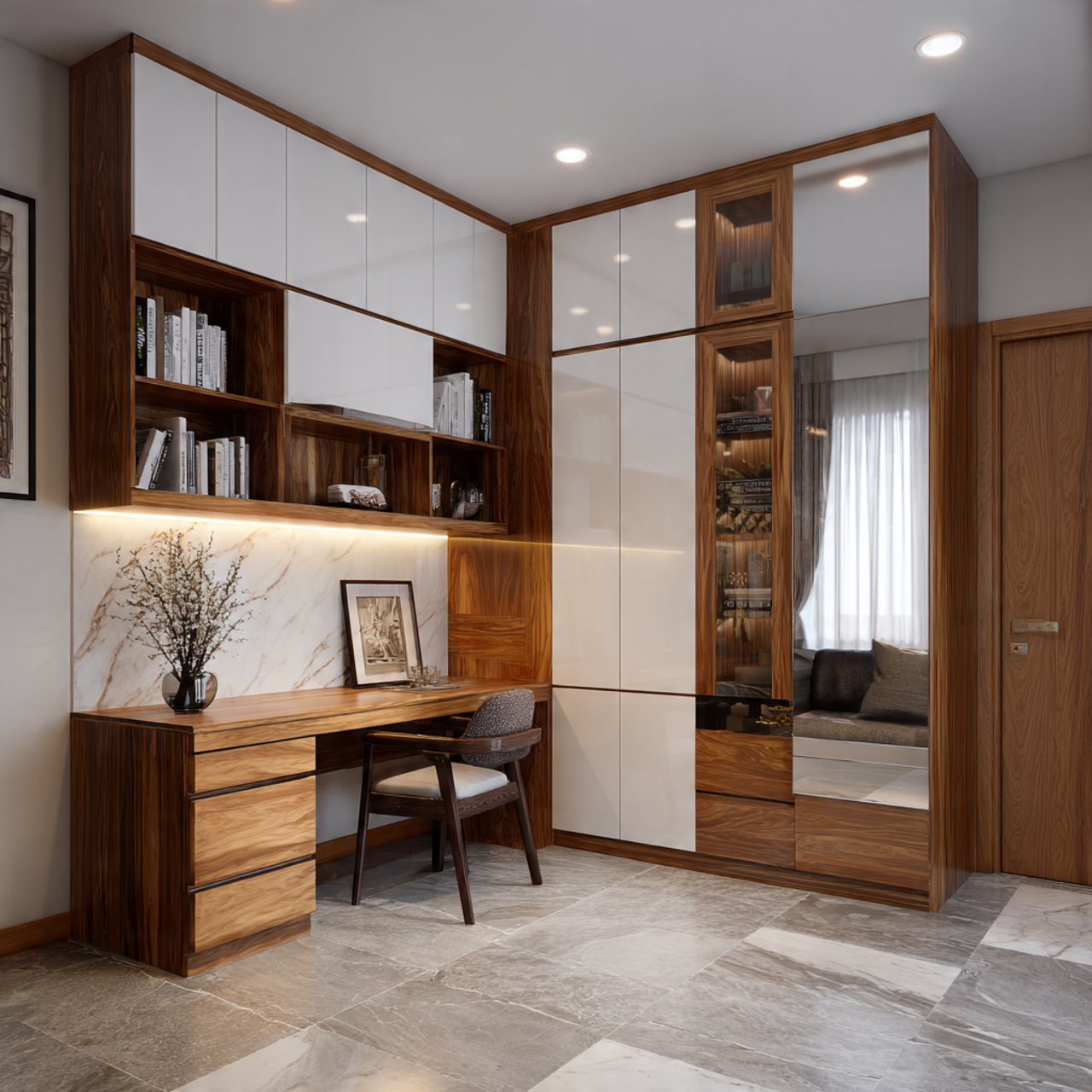 Giải pháp tiết kiệm diện tích tối đa cho căn hộ nhỏ hoặc phòng ngủ master.