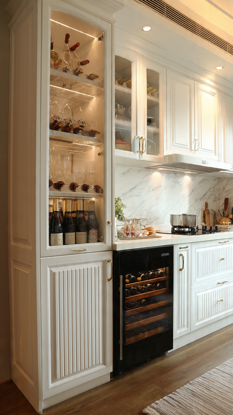 Buổi sum họp gia đình hay tiếp khách sẽ tiện lợi hơn nhiều khi có khu vực trữ rượu ngay trong bếp, giúp thao tác nhanh – gọn – sang.