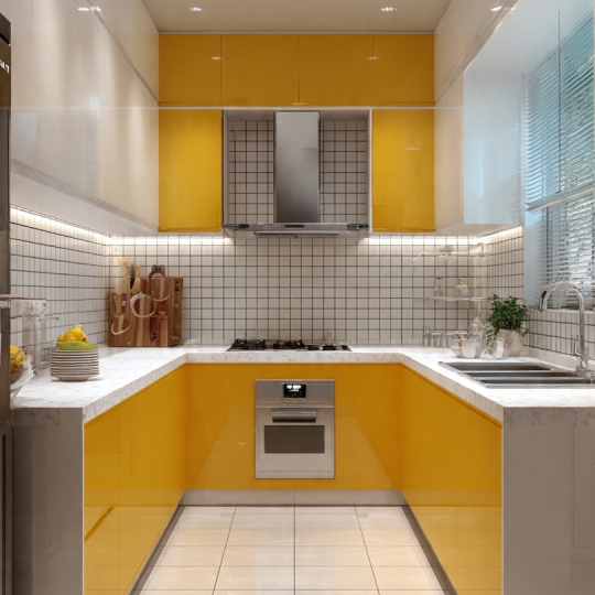 Trong các không gian lớn, tủ bếp Acrylic chữ U: