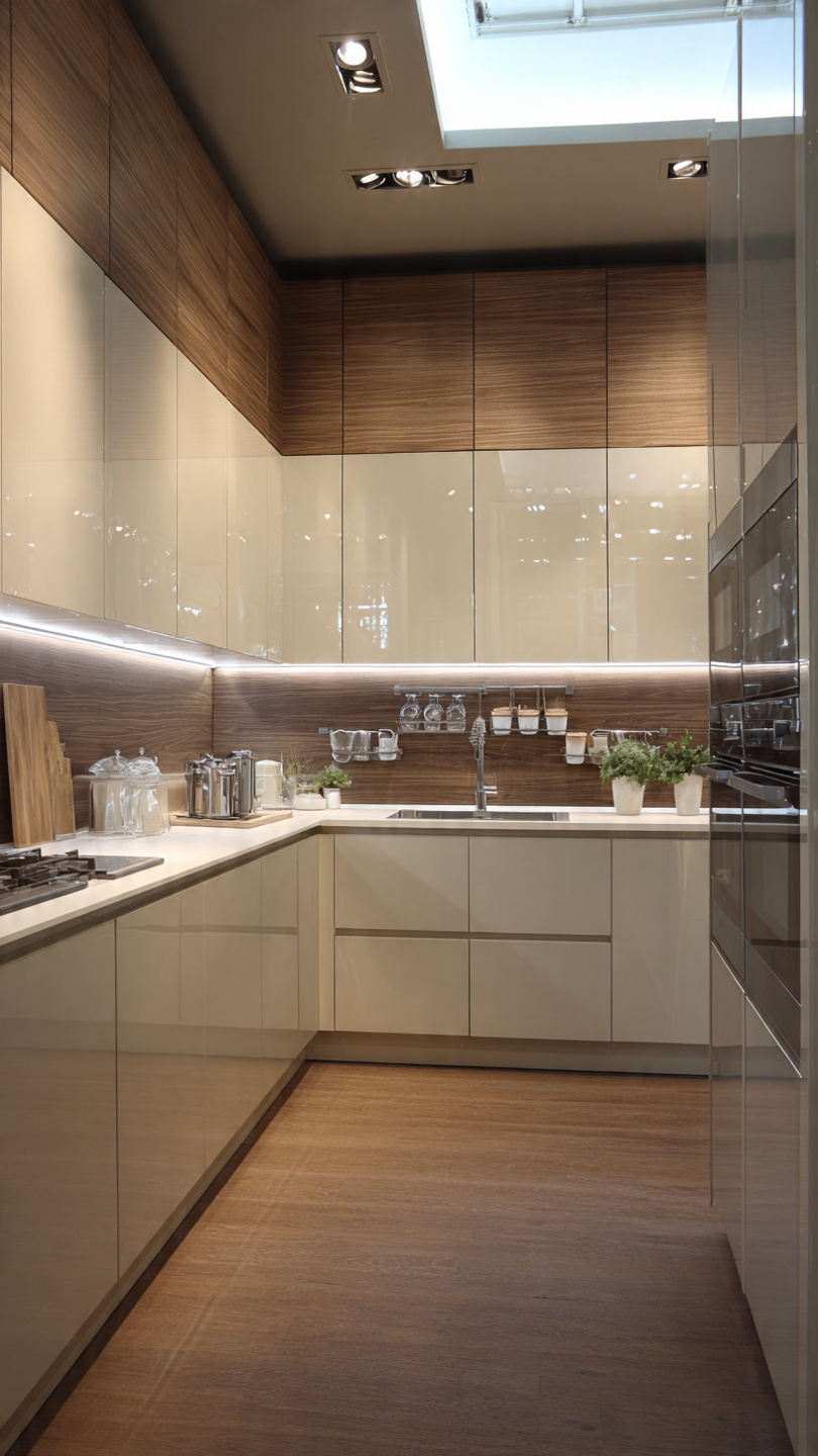 Đặc biệt, khi kết hợp với chất liệu nhựa Acrylic bóng gương, tủ bếp chữ U không chỉ đáp ứng nhu cầu sử dụng mà còn mang đến: