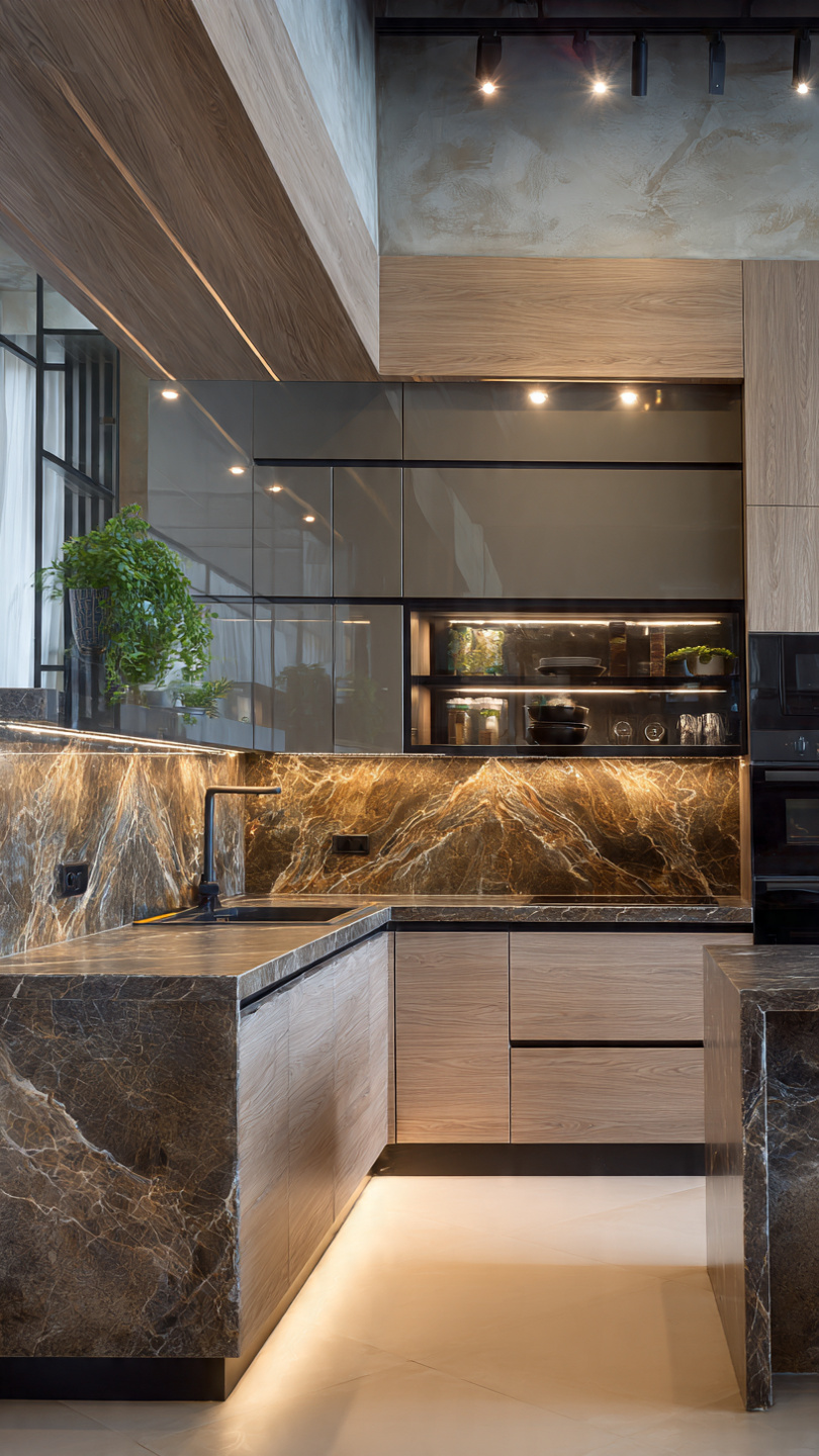 - Dễ phối vật liệu cao cấp như đá nhân tạo, kính, inox