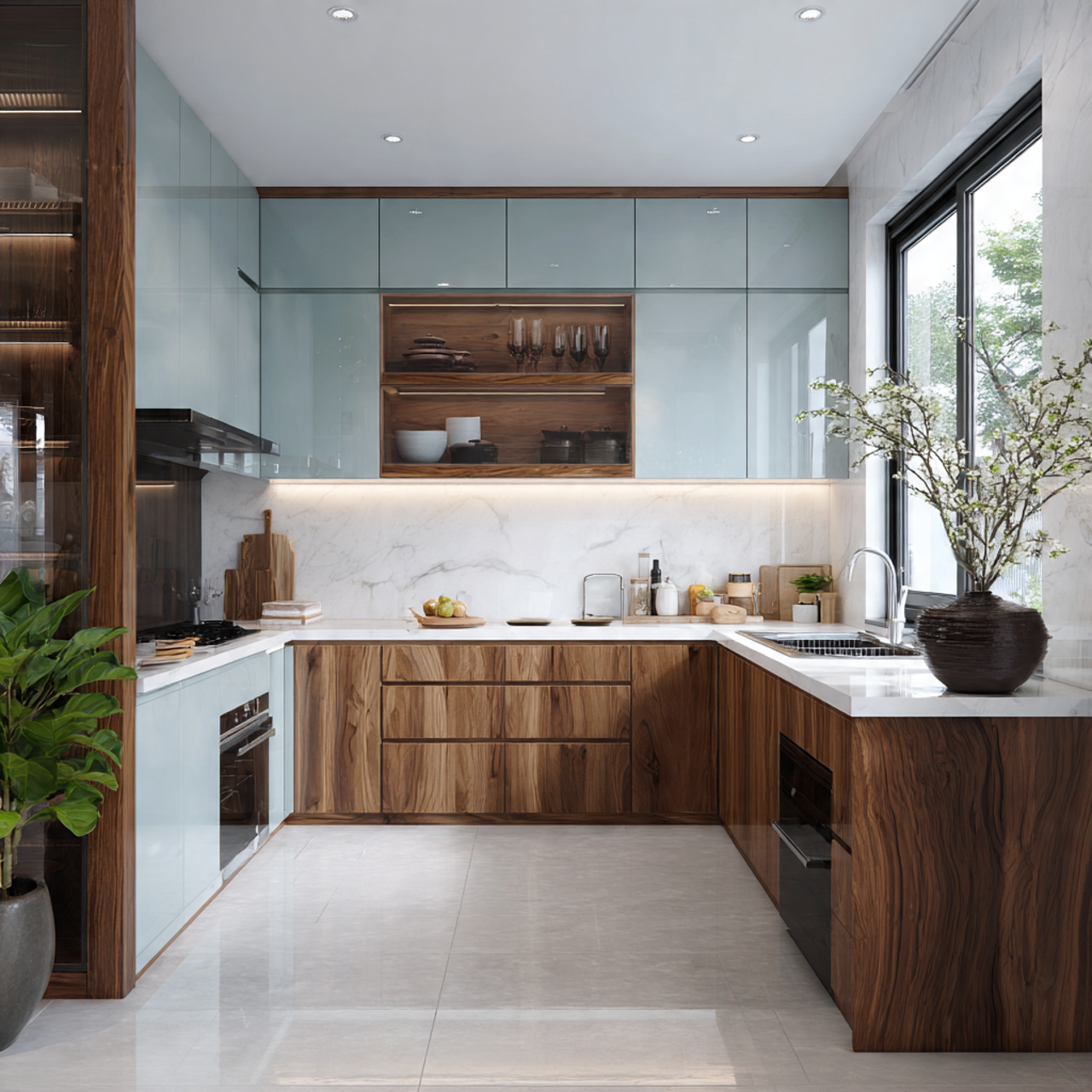 Với hệ thống đèn LED âm tủ, ánh sáng lan tỏa nhẹ nhàng tạo cảm giác ấm áp, tinh tế và hiện đại – đặc biệt khi kết hợp cùng mặt cánh acrylic bóng gương hoặc phủ melamine cao cấp.