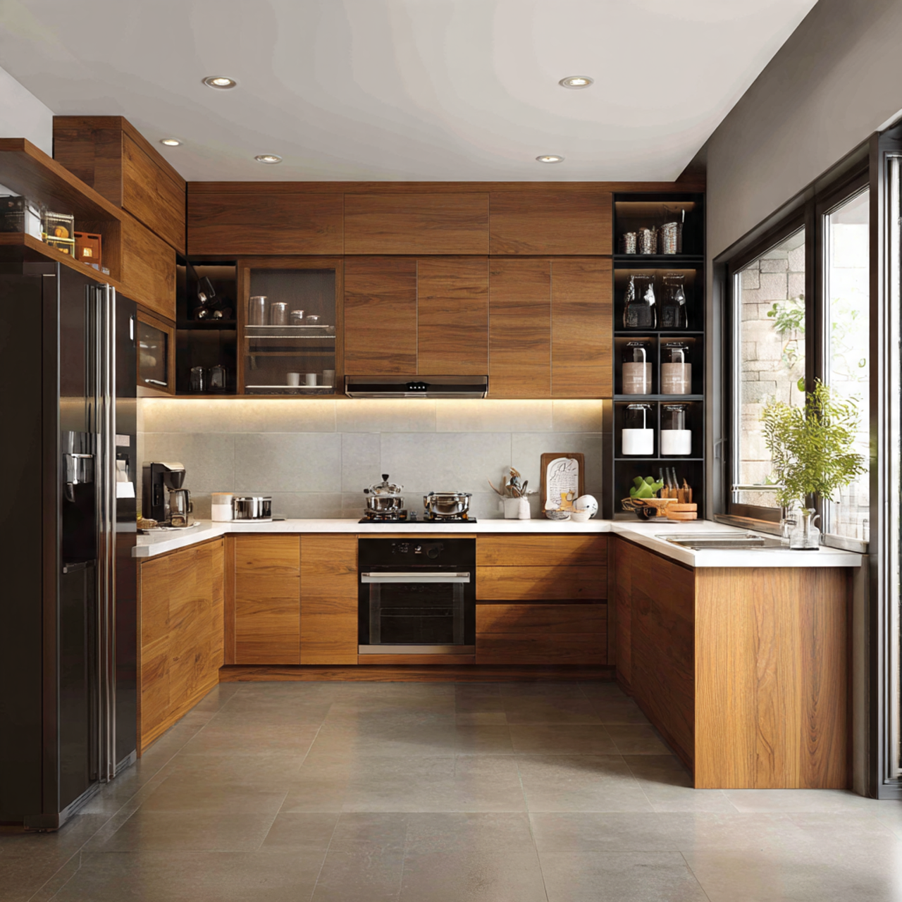 👉 Ưu điểm: Phân chia khu vực nấu – rửa – lưu trữ hợp lý.