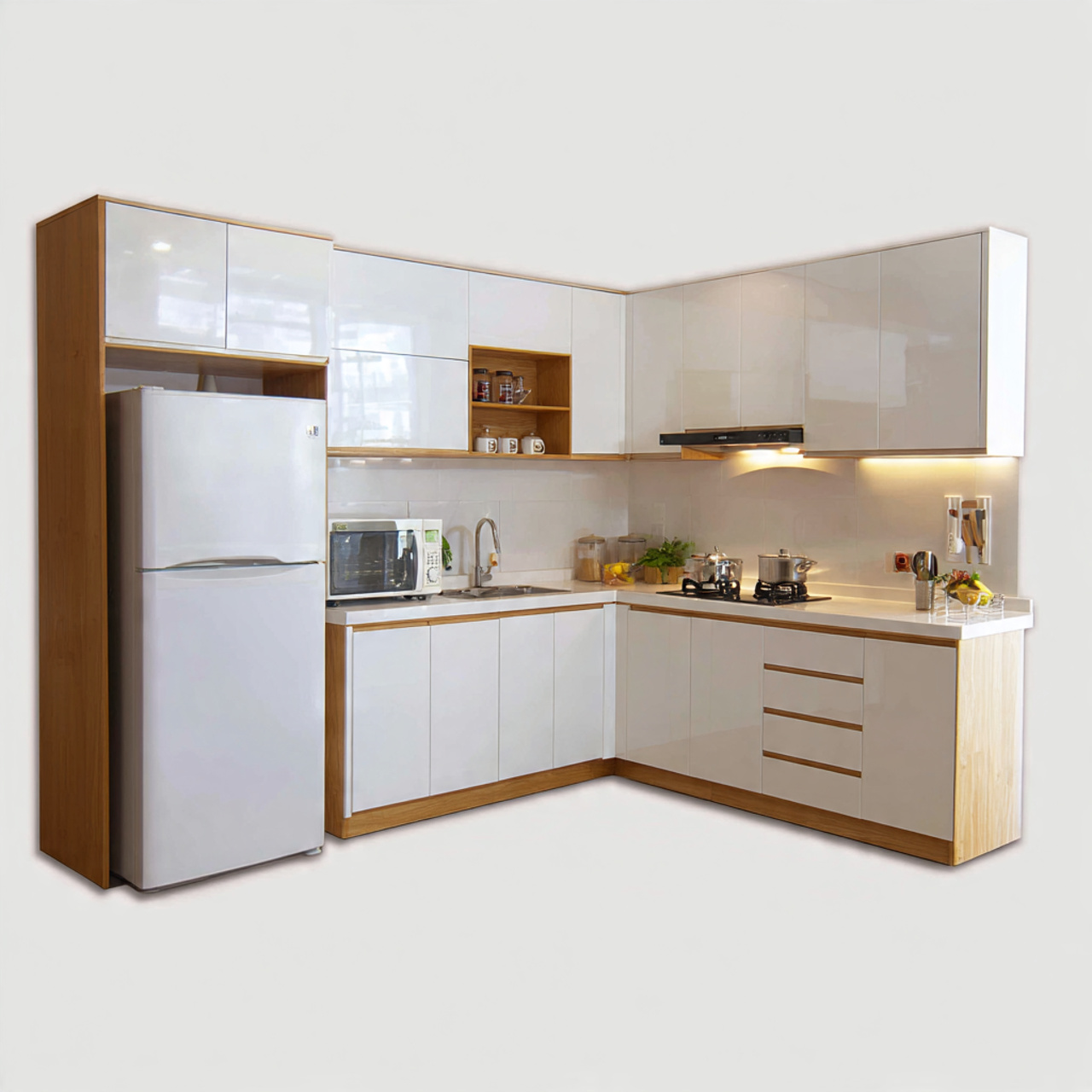 - Tủ bếp chữ L: Tận dụng góc bếp, tối ưu không gian.