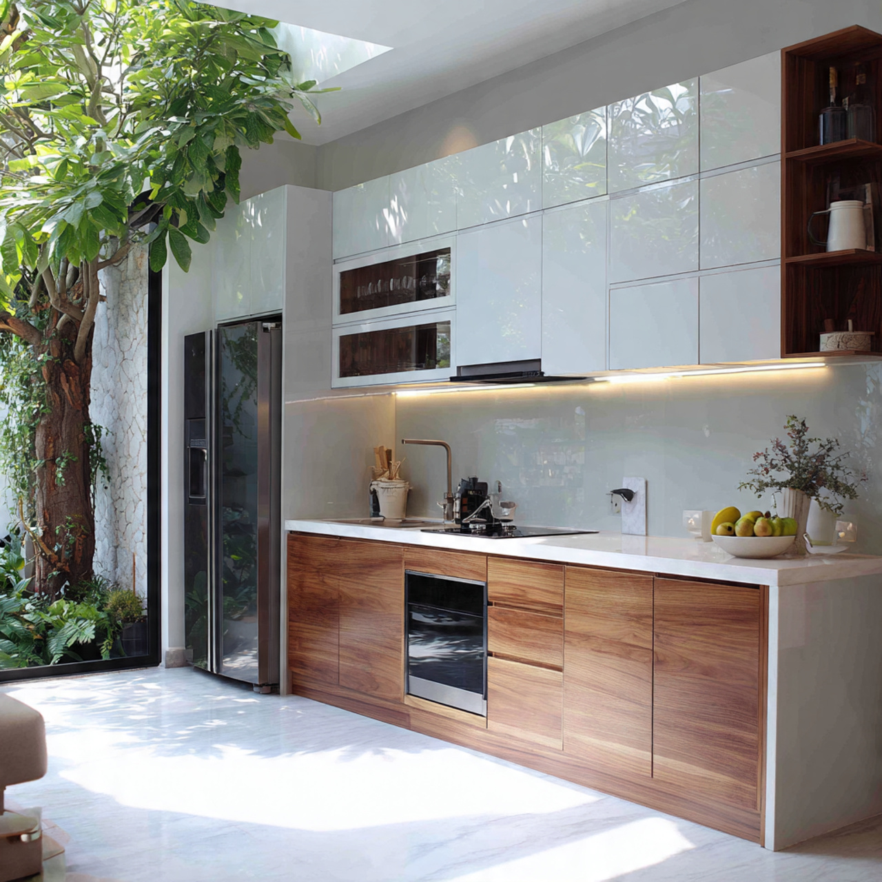 - Tủ bếp chữ I: Phù hợp nhà nhỏ, gọn gàng.