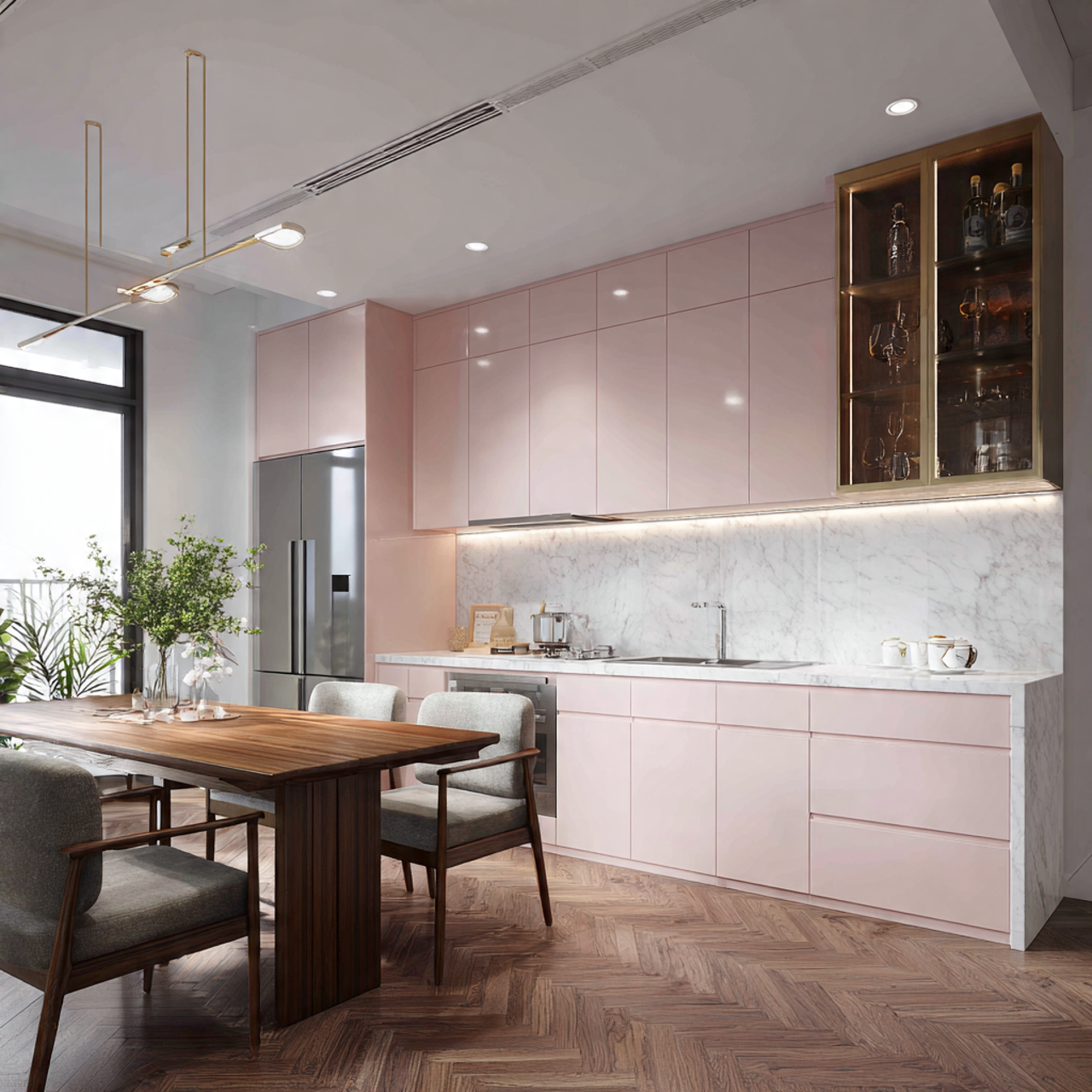 - Chọn màu sáng nếu bếp nhỏ, giúp không gian rộng rãi hơn.