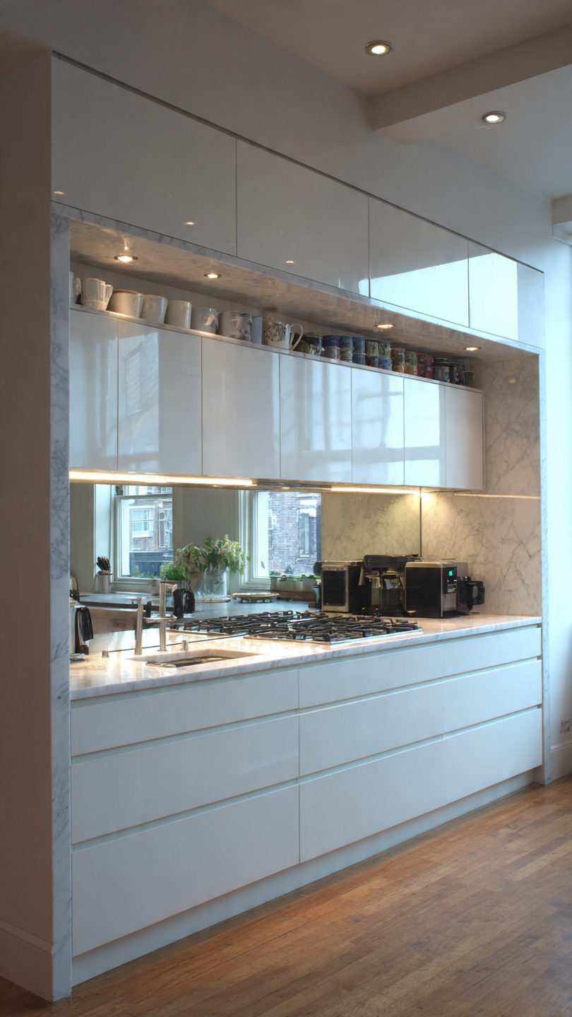 - Bề mặt Acrylic bóng như gương, tạo cảm giác không gian rộng hơn.
