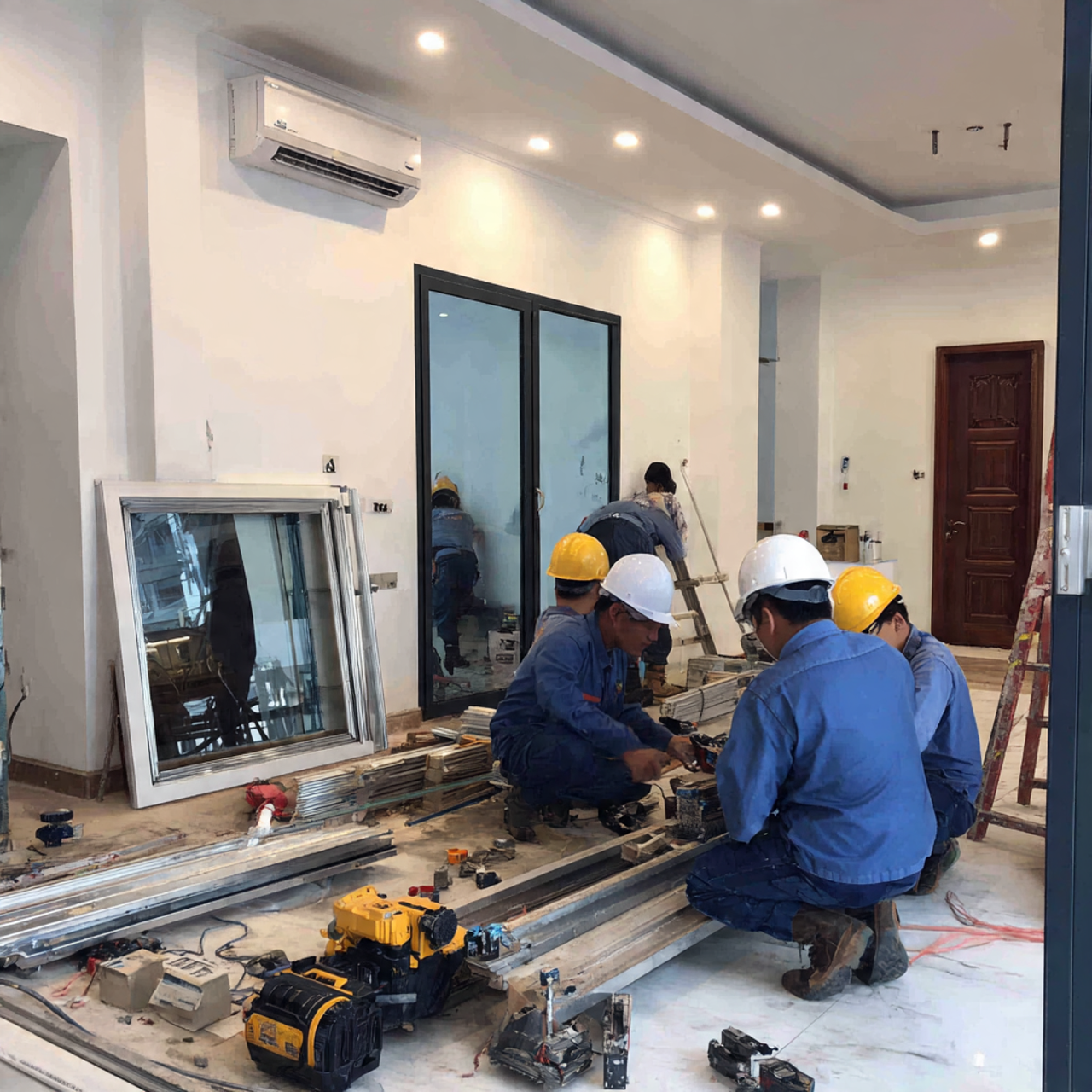 Đội ngũ thi công chuyên nghiệp lắp đặt gọn gàng, sạch sẽ, đúng tiến độ.