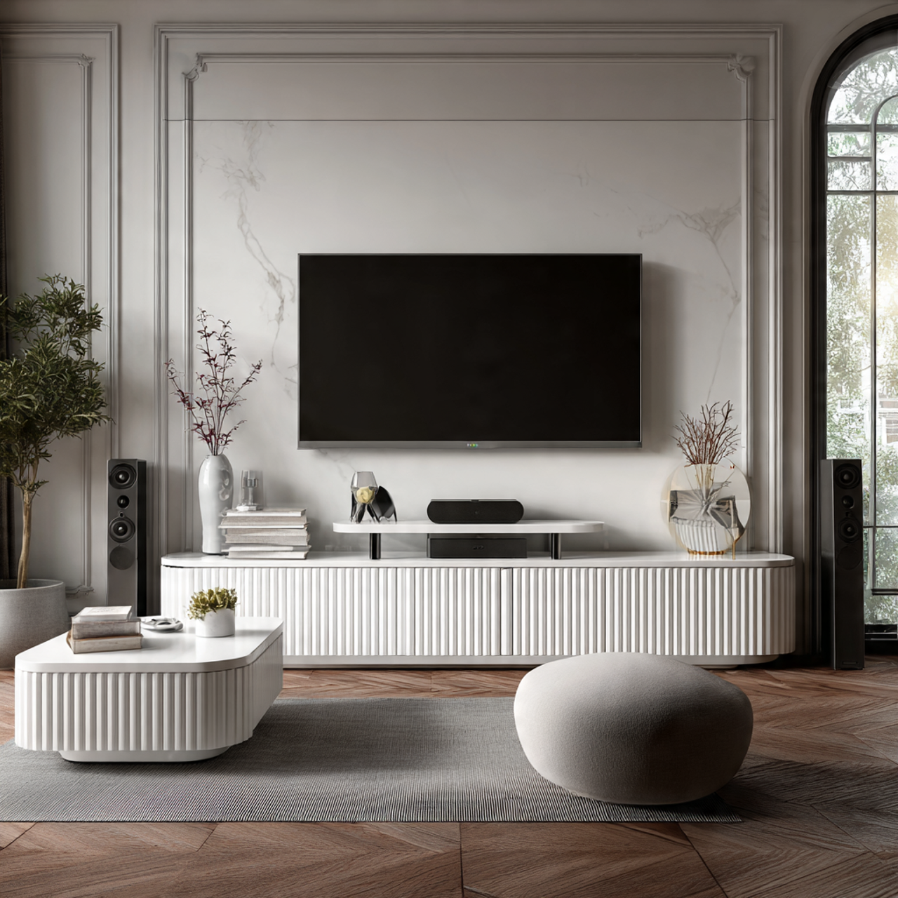 - Phòng khách: Kệ tivi, tủ trang trí.